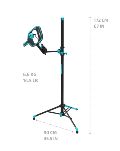 Paketgröße und Gewicht des SpinPro: 98cm x 30cm x 17,5cm / 6,6kg (14.5lb), die Grundfläche ist ein gleichseitiges Dreieck mit 90 cm (35.5 inch) Seiten