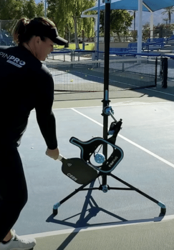 The SpinPro is designed to help players develop proper spin mechanics, focusing on how to create slice and topspin effectively. However, some players have pointed out that the slice serve drill is illegal under pickleball rules.